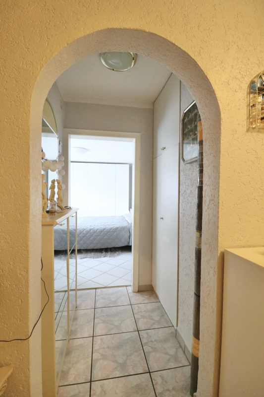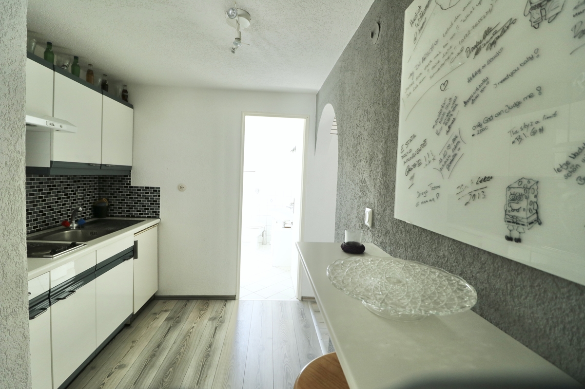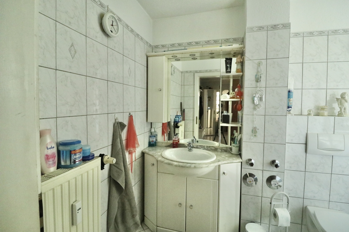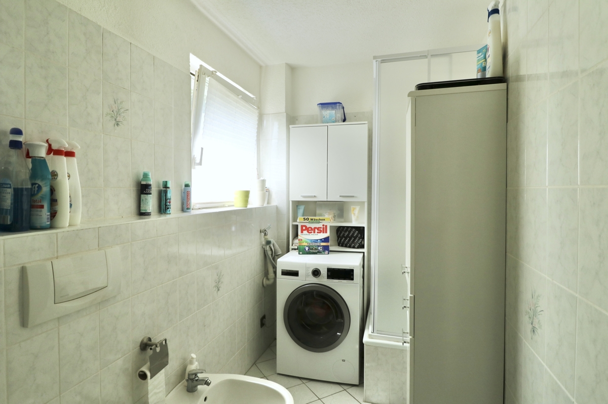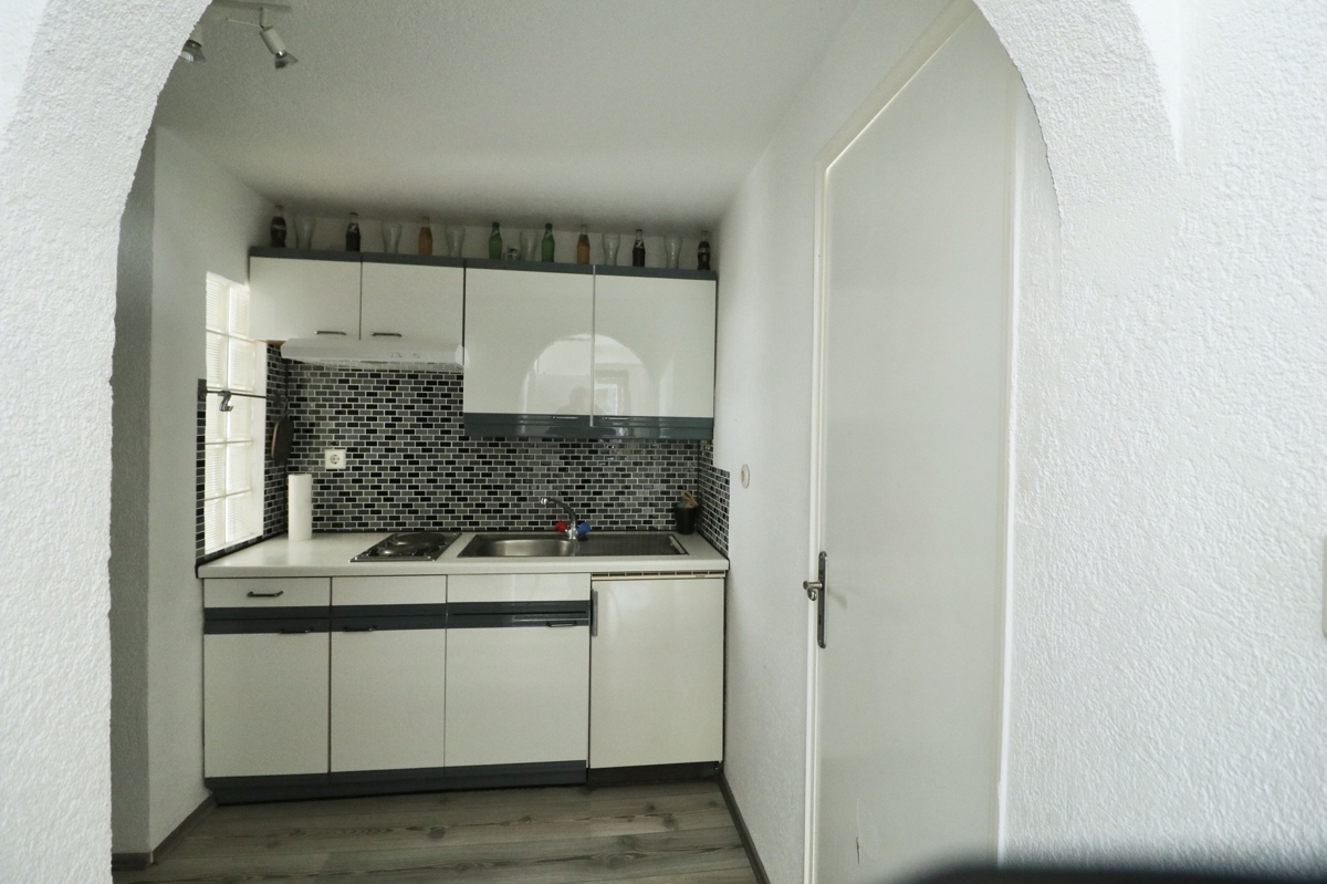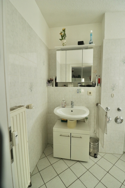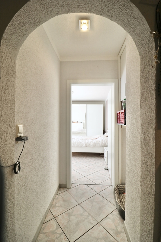Die DG-Wohnung mit ca. 30 m2 ist aufgeteilt in einen kleinen Flur mit Einbauküche, ein Wohnzimmer und ein Schlafzimmer sowie ein Badezimmer.