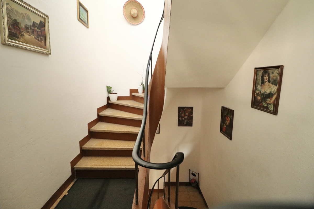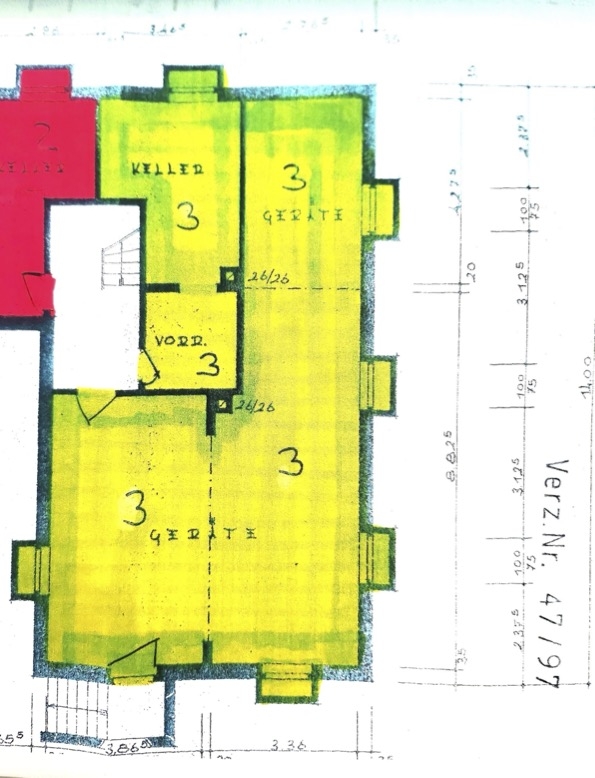 Das Haus ist voll unterkellert, hier befinden sich Kellerräume, die Haustechnik sowie die Ölzentralheizung und eine Werkstatt sowie ein WC.