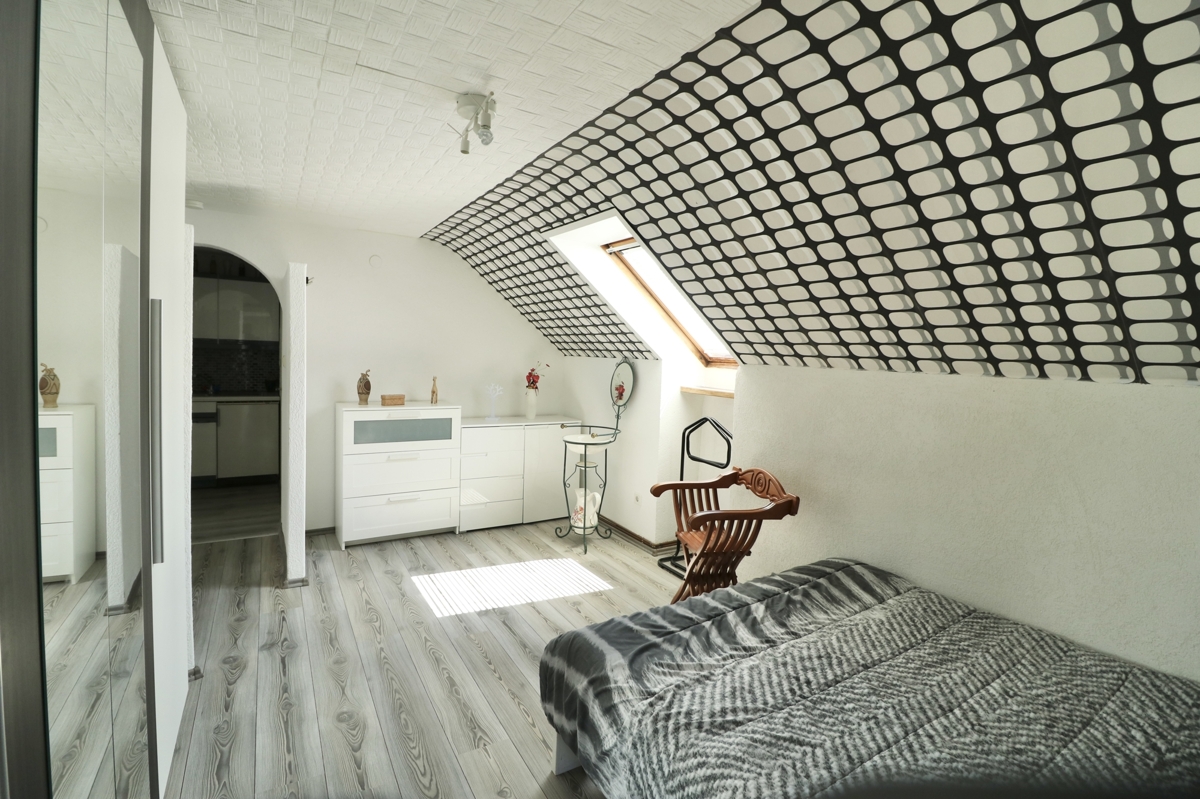 Neben der Wohnung im DG befindet sich der Zugang zum großen Dachboden, der viel Stauraum oder weiteres Ausbaupotential bietet.