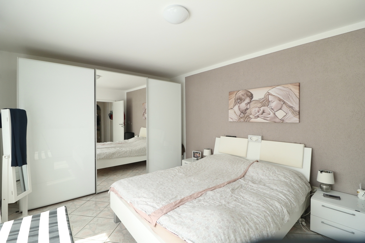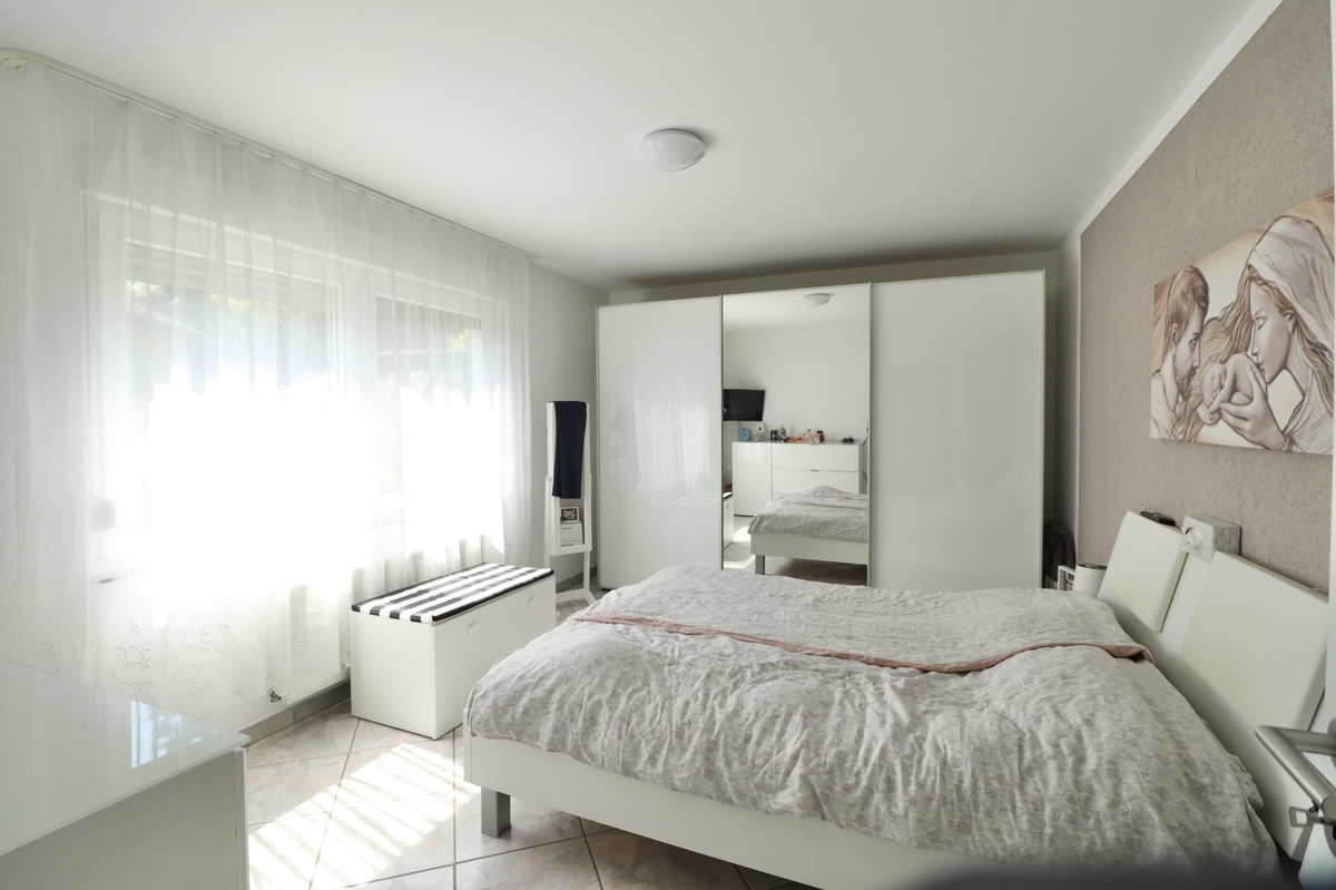 Die Wohnung im OG besitzt ebenfalls ca. 85 m2 und verfügt über die gleiche Raumaufteilung wie die Wohnung im EG und besitzt einen großen Balkon.