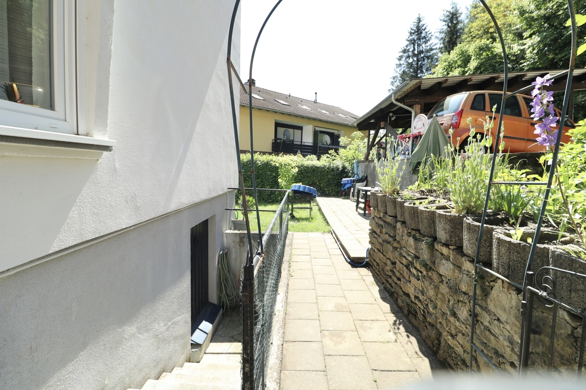Vor dem Haus befinden sich ein Innenhof sowie Stellplätze und der Zugang zum schönen Garten hinter dem Haus. Zum Haus gehört zudem ein Carport mit zwei Stellplätzen.