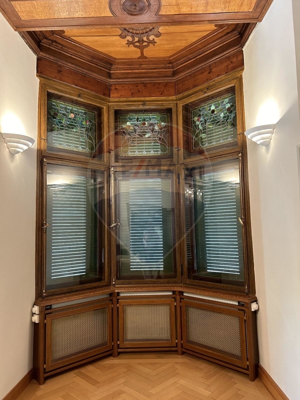 Die Immobilie wurde unter Einhaltung der Vorgaben des Denkmalschutzes 2008 generalsaniert. Die ursprüngliche Raumaufteilung im Untergeschoss, Erdgeschoss und ersten Obergeschoss wurde beibehalten, während das Dachgeschoss komplett neu aufgeteilt wurde. Die Stuck- und Holzdecken im Erdgeschoss sind neu restauriert. Sämtliche Lampen, darunter ein beeindruckender Kristallleuchter, der sich über die gesamte Höhe des Treppenhauses erstreckt, gehören zur Ausstattung des Hauses. In allen Stockwerken finden Sie Vollholzparkett, teilweise historisch und lackiert, sowie neue Vollholzböden, die geölt und verklebt sind. Die historischen Fenster aus Vollholz in Doppelfenster-Ausführung wurden um 1910 teilweise mit aufwendiger Jugendstil-Verglasung, Tiffany-, Riffel- und Kathedralglas gefertigt. Die Fenster im Dachgeschoss wurden 2008 komplett erneuert, während alle anderen Fenster aufwendig saniert und energetisch verbessert wurden. Die sanitären Einrichtungen sind luxuriös ausgestattet und entsprächen aktuellem Standard. Sie umfassen begehbare Duschen mit Glaswandabtrennungen, Wannen, Einbauwaschtischelementen, beleuchtete Oberschränke über dem Waschbecken, Einbauschränke und hochwertige Lampeninstallationen.Das Untergeschoss bietet einen großzügigen Wellnessbereich mit Sauna und Ruheraum mit Kaminofen, eine große Diele sowie ein Gäste-WC. Zusätzlich stehen Ihnen dort ein Abstellraum, ein Waschraum, ein Heizungskeller und ein Weinkeller zur Verfügung.