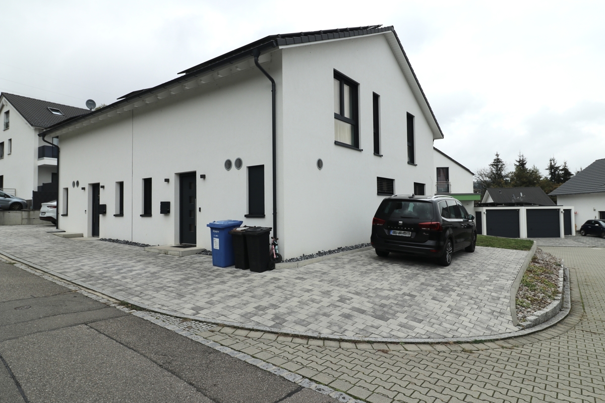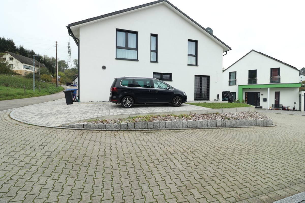 Ein Stellplatz befindet sich direkt vor dem Haus und einer seitlich am Haus. Der seitliche Stellplatz kann mit einem Carport überdacht werden. Anschlussmöglichkeiten für eine Walbox sind bereits vorhanden.