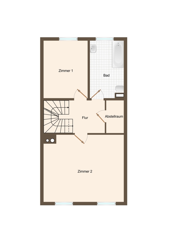 Im Obergeschoss befinden sich zwei geräumige Schlafzimmer, ein