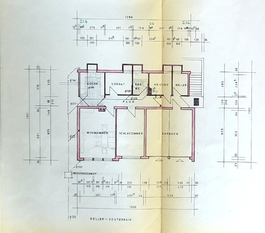 Im UG befinden sich zudem ein Kellerraum und die Haustechnik mit der Ölzentralheizung BJ 2003 sowie der Zugang zu den beiden Garagen.
