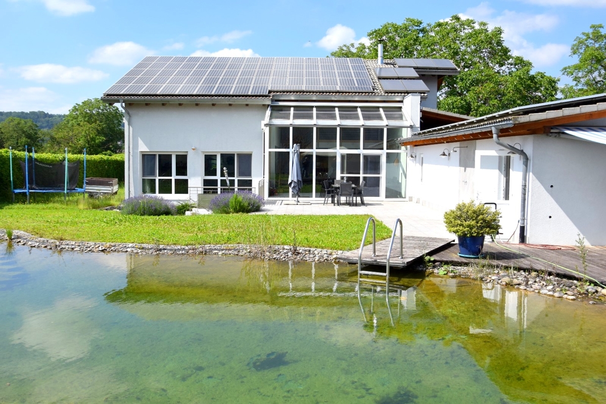 Das Privathaus mit ca. 400 m² Wohnfläche bietet sechs Zimmer, vier Bäder, einen Wellnessbereich und eine Einliegerwohnung. Eine Photovoltaikanlage, Fußbodenheizung und ein Kamin sorgen für nachhaltigen Komfort.