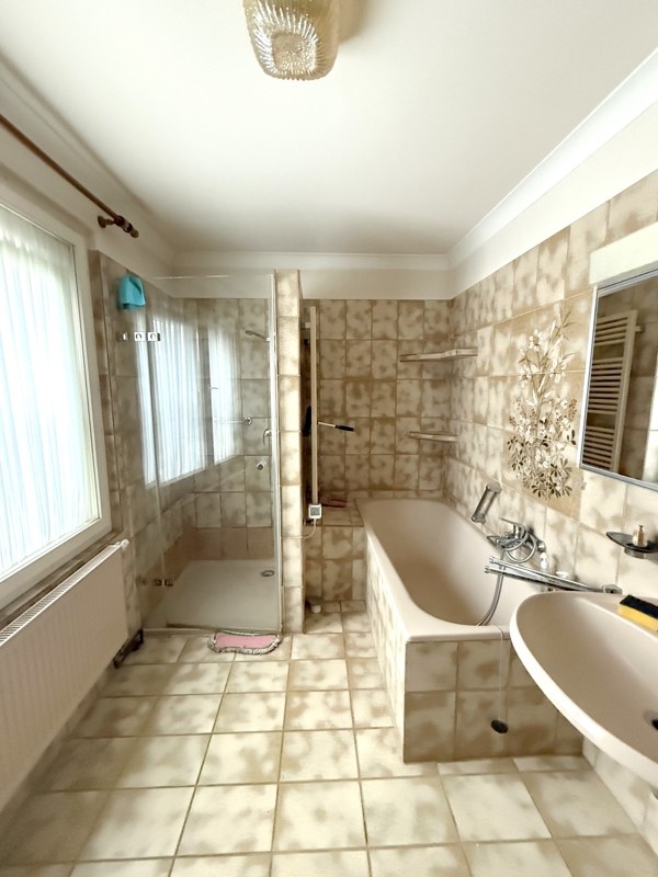 Drei Badezimmer und ein zusätzliches Gäste-WC sorgen für höchsten Komfort im Alltag. Beide Wohneinheiten verfügen jeweils über eine Einbauküche, jedoch gehört die Küche in der Einliegerwohnung der aktuellen Mieterin.
