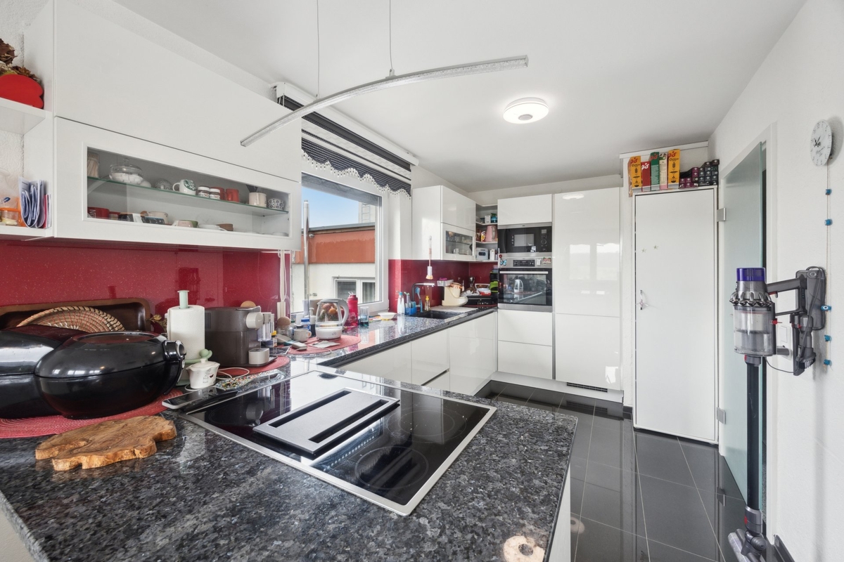 Diese exklusive 4,5-Zimmer-Eigentumswohnung im obersten Stockwerk bietet auf ca. 100 m² modernen Wohnkomfort mit einem offenen, lichtdurchfluteten Grundriss und hochwertigen Materialien. Die gesamte Wohnung wurde umfassend modernisiert und überzeugt mit stilvoller Ausstattung sowie einer hochwertigen Einbauküche mit Markengeräten. Der großzügige Wohnbereich ist offen gestaltet und sorgt für ein angenehmes Wohngefühl. Zwei Balkone ermöglichen einen wunderschönen Ausblick in verschiedene Himmelsrichtungen und laden zum Entspannen ein.Das gepflegte Wohnhaus wurde ebenfalls modernisiert und verfügt über eine frisch sanierte Fassade. Die Heizung ist von 2008 Ein Lift sorgt für einen bequemen, barrierefreien Zugang zur Wohnung. Zur Immobilie gehört außerdem eine Einzelgarage, die bequemes und sicheres Parken ermöglicht. Diese Wohnung ist ideal für alle, die ein hochwertiges Zuhause mit Weitblick und hohem Wohnkomfort suchen.