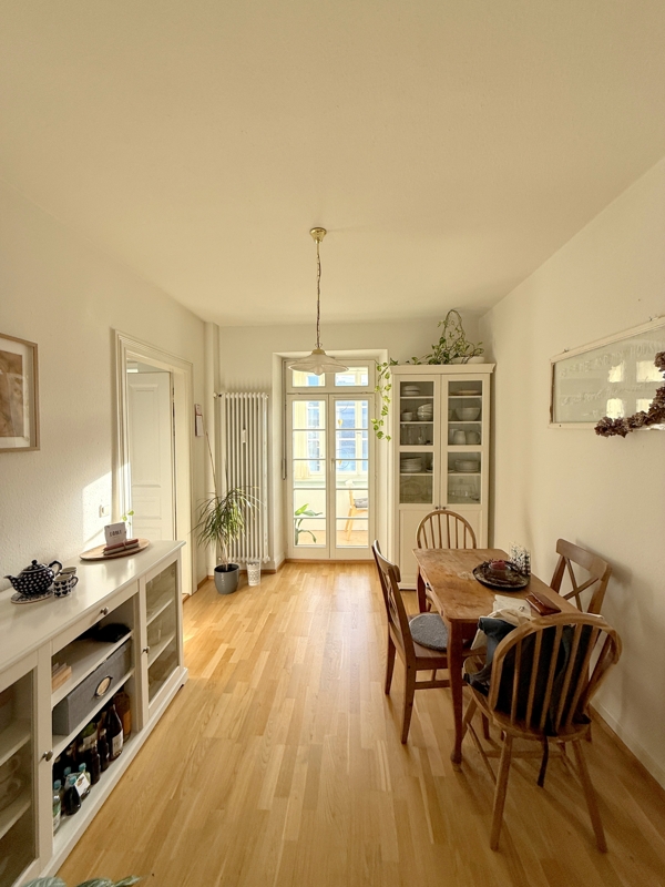 Die Wohnung verfügt über insgesamt 3 Zimmer, wovon eines als Schlafzimmer, eins als Wohnzimmer und das dritte als Esszimmer genutzt werden. Das Wohnzimmer bietet ca. 23 m².