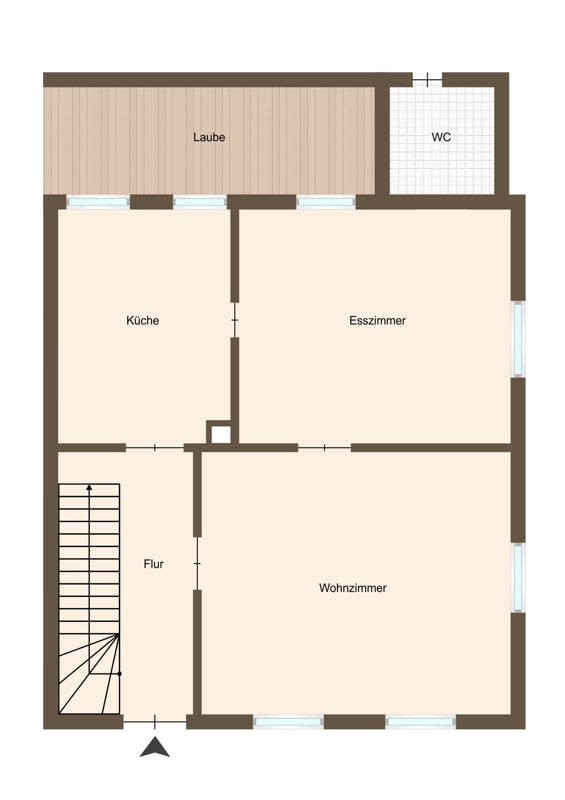 Erdgeschoss:Das Erdgeschoss besticht durch eine durchdachte Raumaufteilung. Hier befinden sich ein großzügiges Wohnzimmer sowie ein offener Koch- und Essbereich, der direkten Zugang zur gemütlichen Laube bietet. Zusätzlich gibt es ein Gäste-WC, das den Wohnkomfort abrundet.