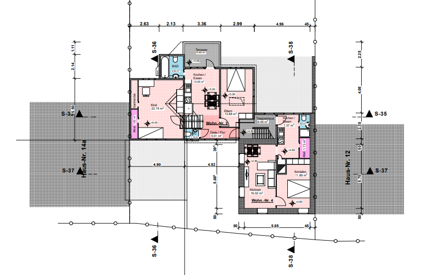 - eine 1 Zimmer-Wohnung mit ca. 35 m² und großer Terrasse,