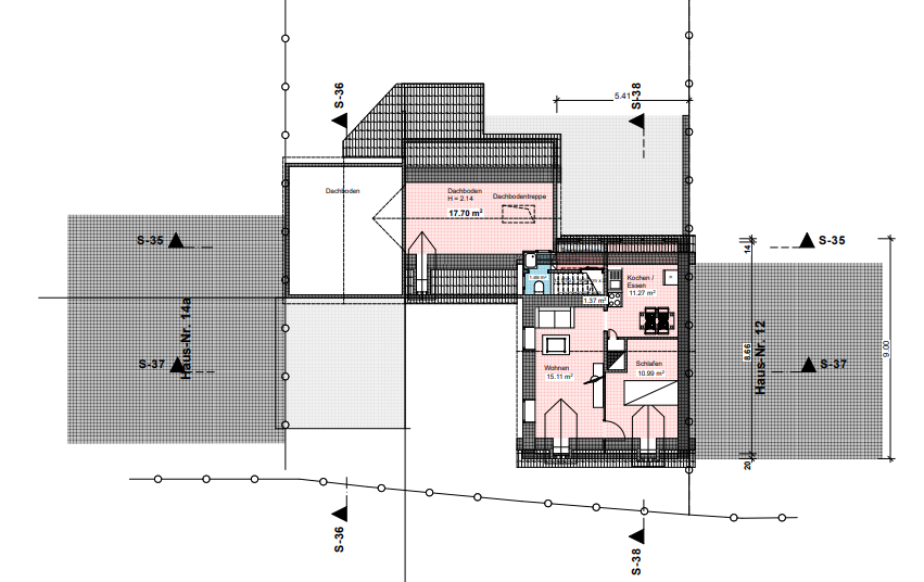 Die Gesamtwohnfläche beträgt ca. 270 m², welche sich auf das EG, OG und im DG auf 5 Wohnungen verteilen. Das Grundstück misst 542 m². Hinter dem Haus befindet sich der Hinterhof direkt anliegend an einen Hang mit Wald.