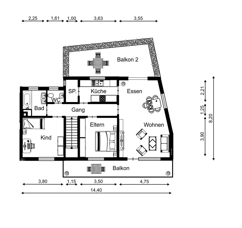 Zusätzlich wird Ihnen Platz zum Pflanzen von Blumen oder Gemüse geboten, oder auch für Gartenmöbel.