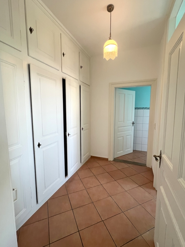 Der Flur zwischen Küche und Badezimmer bietet in dem großen Einbauschrank neben viel Stauraum auch einen einbetonierten Tresor für Ihre wertvollsten Schätze (materiell).