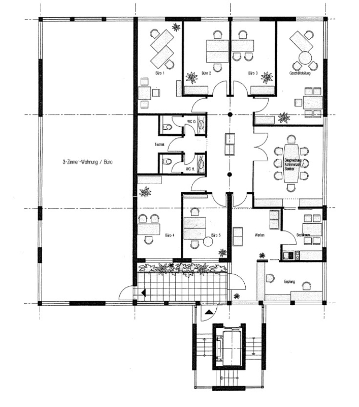 Zwei separate WCs sorgen für zusätzlichen Komfort für Ihr Team und Ihre Kunden. Der Empfangsbereich heißt Ihre Besucher professionell willkommen, während ein Besprechungszimmer ideale Voraussetzungen für Meetings und Beratungen schafft.