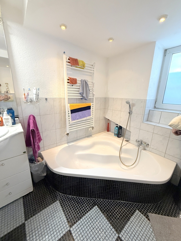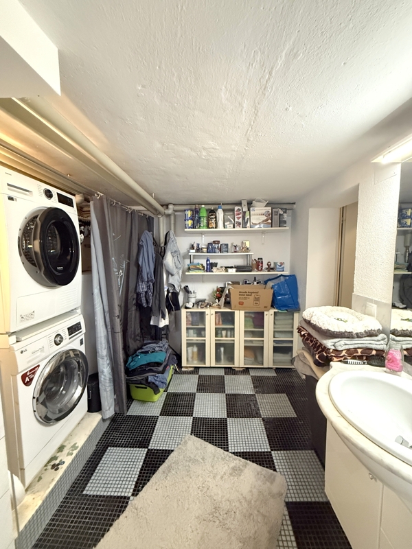 Das Hauptbadezimmer befindet sich im Untergeschoss und offeriert Ihnen eine Eckbadewanne sowie eine Dusche. Ebenso findet die Waschmaschine sowie ein Trockner ihren Platz. Die Gas-Heizung ist ebenfalls hier untergebracht. Zusätzliche stehen Ihnen in einem, Kellerraum ca. 20 m² Nutzfläche zur Verfügung.