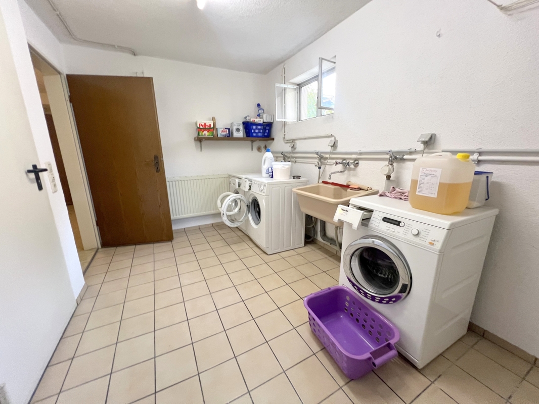 Die Nutzfläche im Kellergeschoss beträgt insgesamt ca. 140,5 m². Auf dieser Fläche wurde nachträglich eine großzügig geschnittene Einliegerwohnung auf ca. 65 m² ausgebaut. Die Einliegerwohnung, besteht aus einem verbundenem Zimmer, welches man wieder in zwei teilen könnte. Sie können diese Wohnung vermieten oder für eigene Zwecke nutzen.