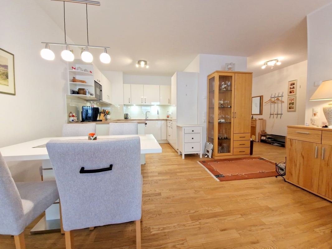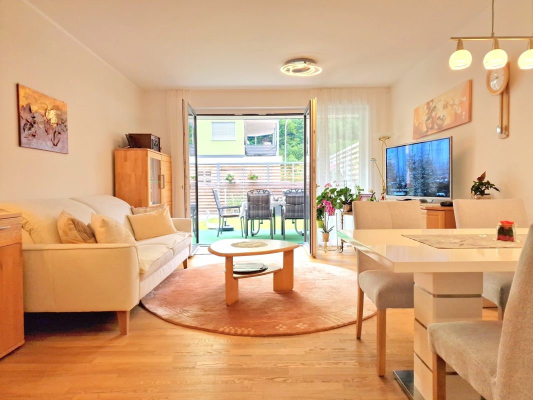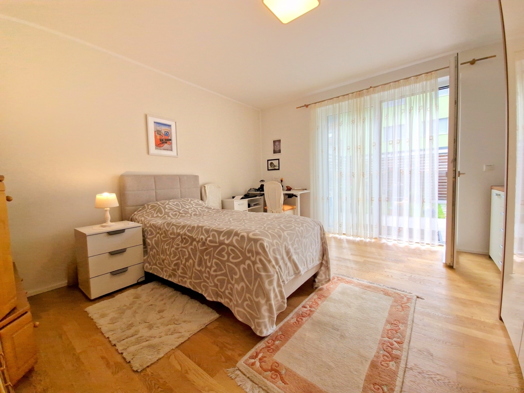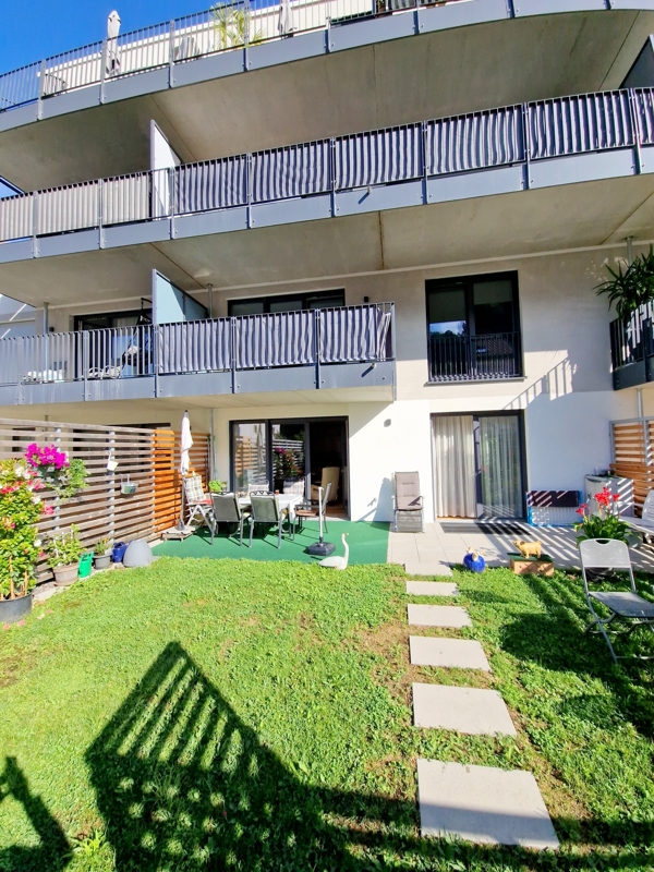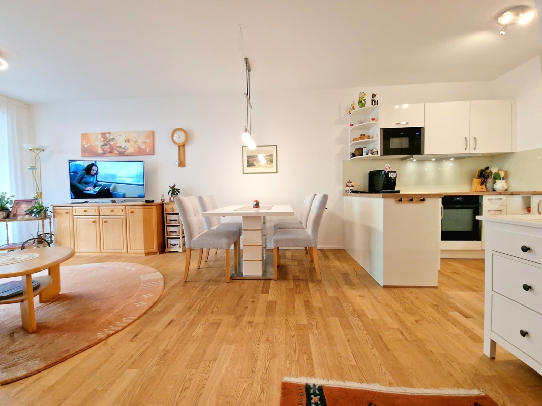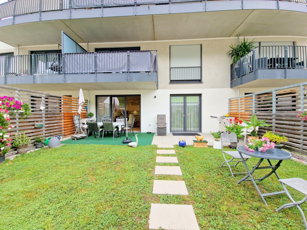 Das Herzstück der Wohnung bildet der lichtdurchflutete Wohn- und Essbereich mit direktem Zugang zur sonnigen Terrasse (ca. 16 m²) und dem privaten Garten (ca. 30 m²). Der Garten ist nicht nur von der Terrasse, sondern auch über eine separate Gartentüre zugänglich – perfekt für Familien, Gartenliebhaber oder Tierbesitzer.