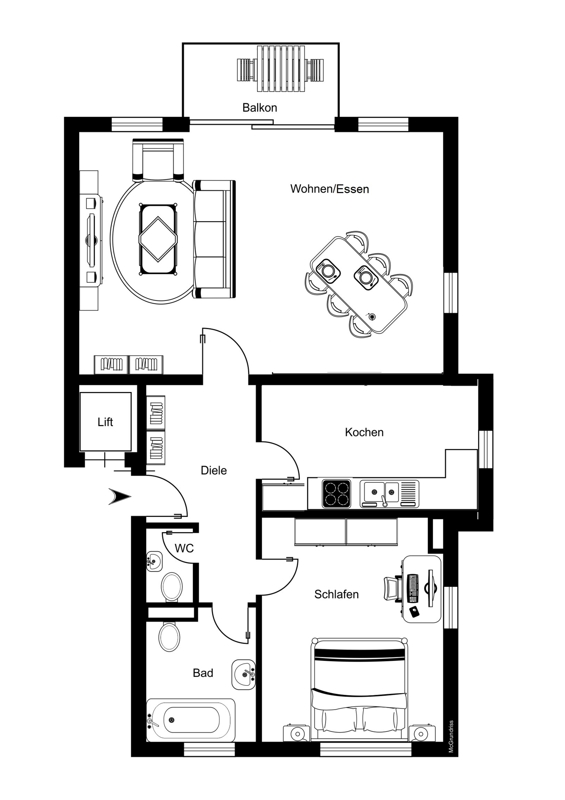 Große und helle 2-Zimmer-Wohnung mit Balkon direkt an der Schweizer Grenze!