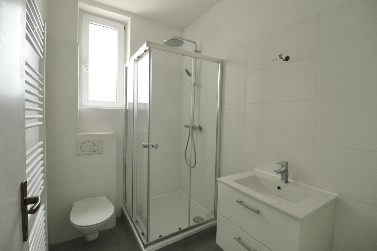 Das helle, neu renovierte Tageslichtbad mit Dusche, Waschtisch und WC rundet das Wohnangebot dieser schönen Wohnung ab. Zur Wohnung gehört ein Kellerabteil. Anschlüsse für Waschmaschine und Trockner befinden sich im Waschraum im UG. Pkw-Stellplätze befindet sich direkt vor dem Haus. Ein Stellplatz kann für 30,- €/monatl. angemietet werden.
