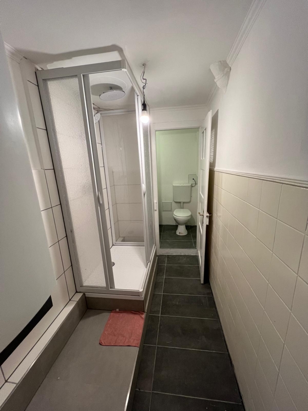 Das Badezimmer ist mit Dusche ausgestattet und steht ebenfalls zur gemeinsamen Nutzung zur Verfügung.