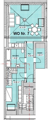 Zum Schlafzimmer gelangen Sie über ein Durchgangszimmer in den obersten Stock welches Sie sich gemütlich einrichten können. Ein Badezimmer mit Dusche rundet das Angebot ab und sorgen für den nötigen Komfort. Diese Wohnung bietet nicht nur ein ideales Wohngefühl, sondern auch das Potenzial, sich kreativ auszuleben.