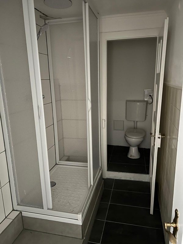 Das Badezimmer ist mit Dusche ausgestattet und steht ebenfalls zur gemeinsamen Nutzung zur Verfügung.