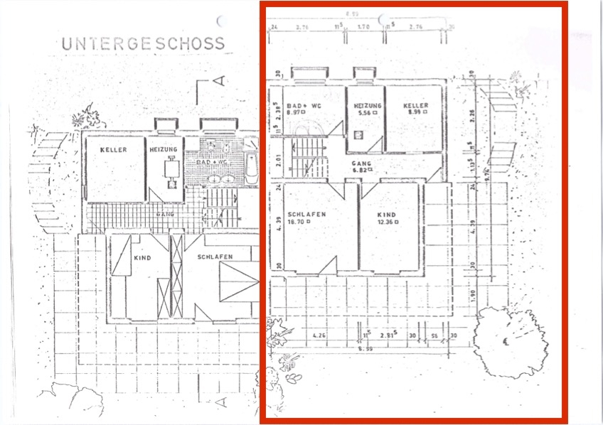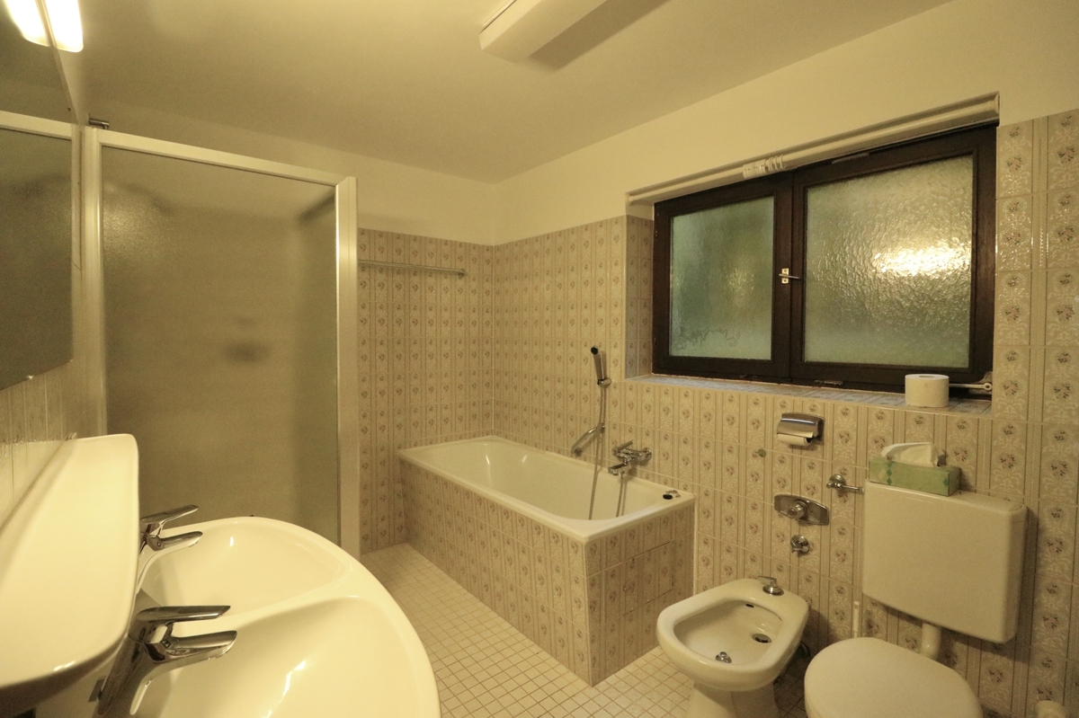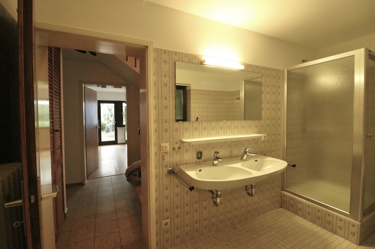 Im UG befinden sich ein Schlafzimmer mit Zugang zur Terrasse und Garten sowie ein Kinderzimmer, ein großes Badezimmer und ein Kellerraum sowie der Heizungsraum mit der Ölzentralheizung BJ 1986. Über einen separaten Ausgang an der Seite des Hauses gelangen Sie ebenfalls in den Garten und zum Schopf für Gartengeräte.