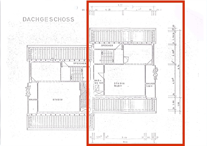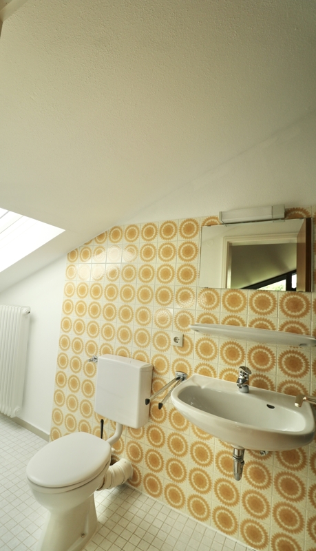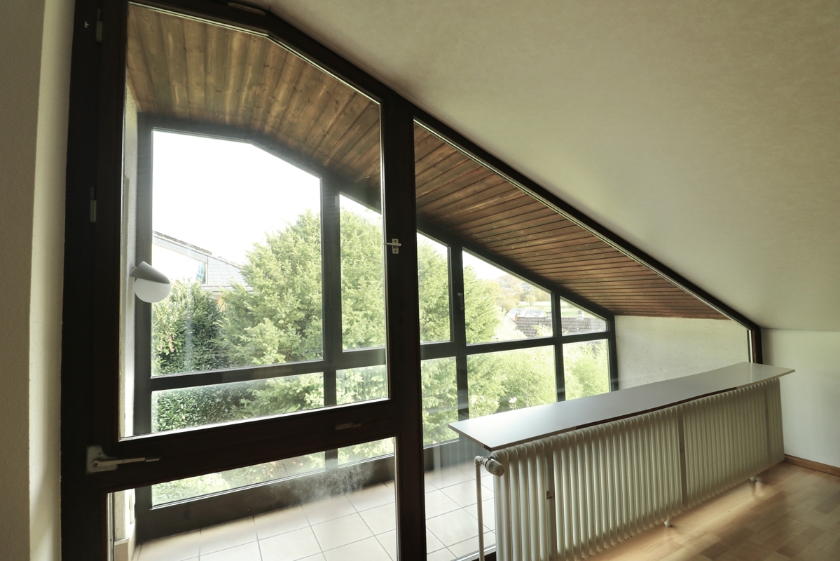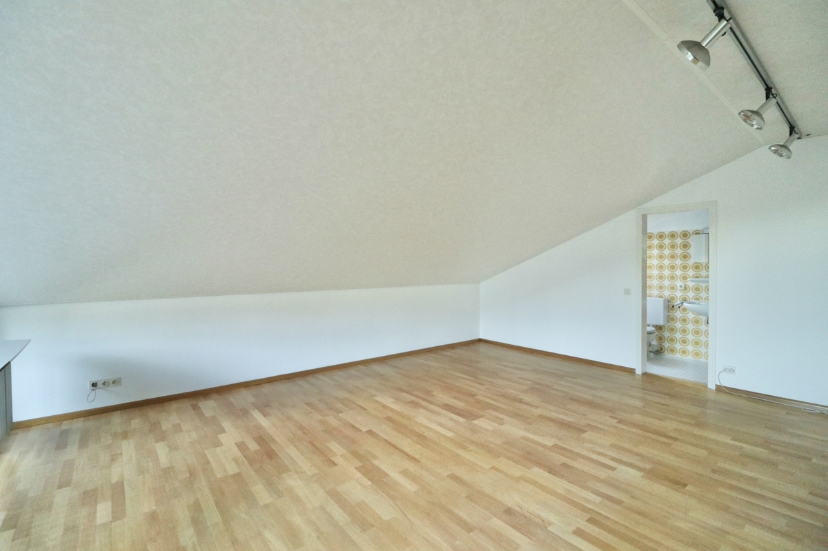 Im DG des Hauses befindet sich ein großes, lichtdurchflutetes Studiozimmer mit verglaster Loggia und angrenzendem Tageslichtbadezimmer mit Waschtisch, Dusche u. WC. Im Flurbereich des DGs haben Sie zudem einen Abstellraum.