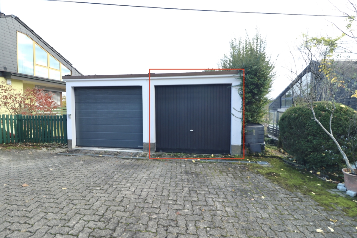 Zum Haus gehört eine Einzelgarage mit einer Stellplatzfläche vor der Garage.