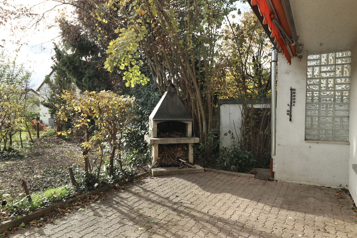 Vor dem Haus liegt ein schöner Vorgarten. Hinter dem Haus erwartet Sie eine Terrasse mit Außenkamin und ein großzügiger Garten, der zu den verschiedensten Freizeitmöglichkeiten und zum Entspannen im Grünen einlädt!